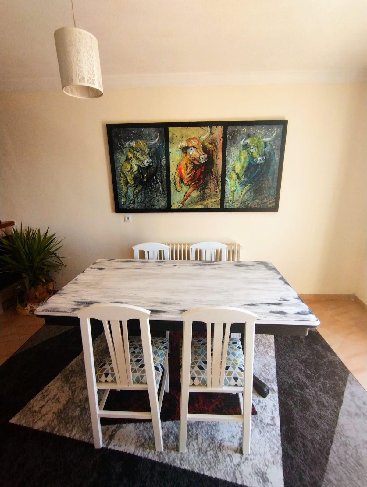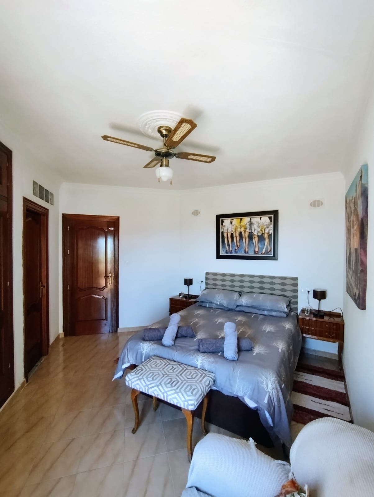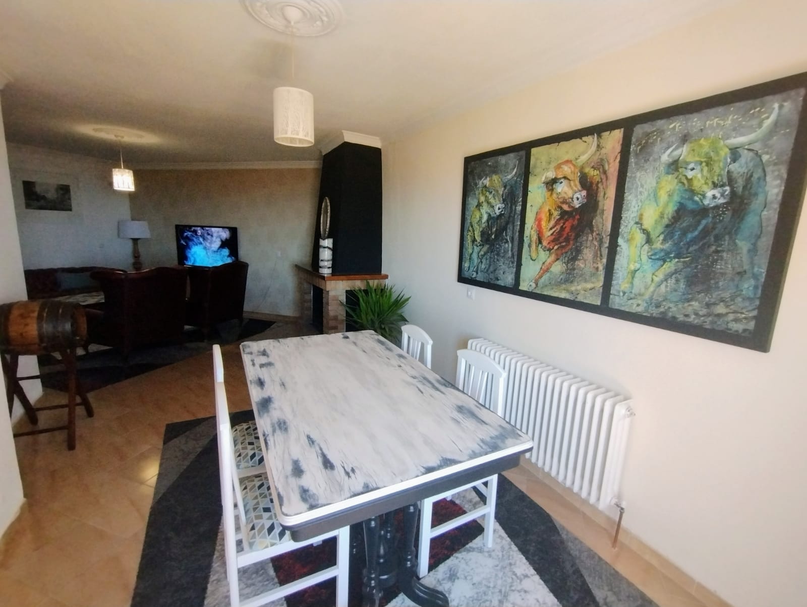The house has been renovated and has 4 double bedrooms each with its own bathroom. There is an art room for painting and a separate one for printing with an etching press. there are two terraces with views of the sea and mountains with the village below.